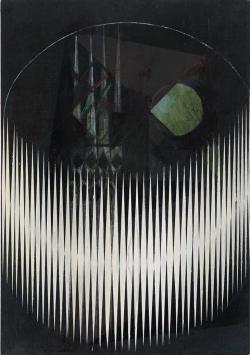 “When I was making this Untitled series I was sharing a studio with four artists who were making installation set-plays and film and this informed my approach to these works,†Nicholas Byrne explains. “It was important to me that the paintings evoked a visual response that was similar to how we appreciate the physical sensation of an object. Untitled (Collar) is small scale and conveys a kind of privacy. You might think of a surrealist tradition of game-play, where bodies cross into objects. I suppose these diamond shapes could be the teeth of a stylus or comb. A feeling of tension might arise, where optically the shapes and colours would promise to fold or collapse. The paintings are presented on architectural supports as I wanted them to demonstrate something physically active.â€