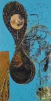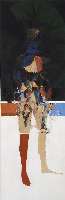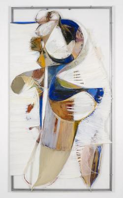 “The paintings are loaded like ‘portraits’. They’re hung at head height and address people on this level, but for my part, I mean to keep an active subjectivity from one work to the next. In these small works I wanted to say something simple and balanced like ‘think of a head’. But the idea of a ‘head’ could be anything: be a collar, or arches, or a flower. Each time I tried to put this into a particular kind of physical negotiation. Untitled (Boy) is held in the frame by an arch of stiletto shapes. They are painted on thin supports, quite flimsy and highly-strung. They are intentionally made to seem insubstantial, perhaps not totally solid or stable. When I originally showed these works, the series was suspended on wooden supports in a concertina running through the gallery. Untitled (Boy) was the most complete image – a final figure in a melodramatic parade.â€