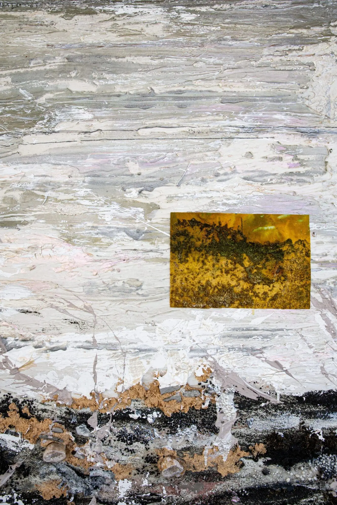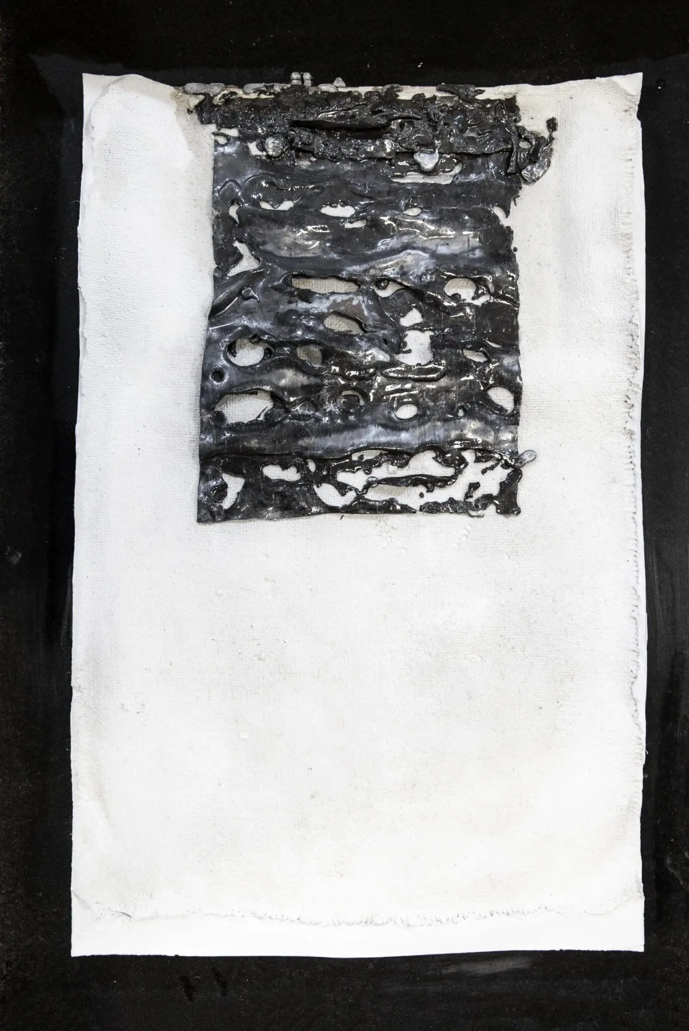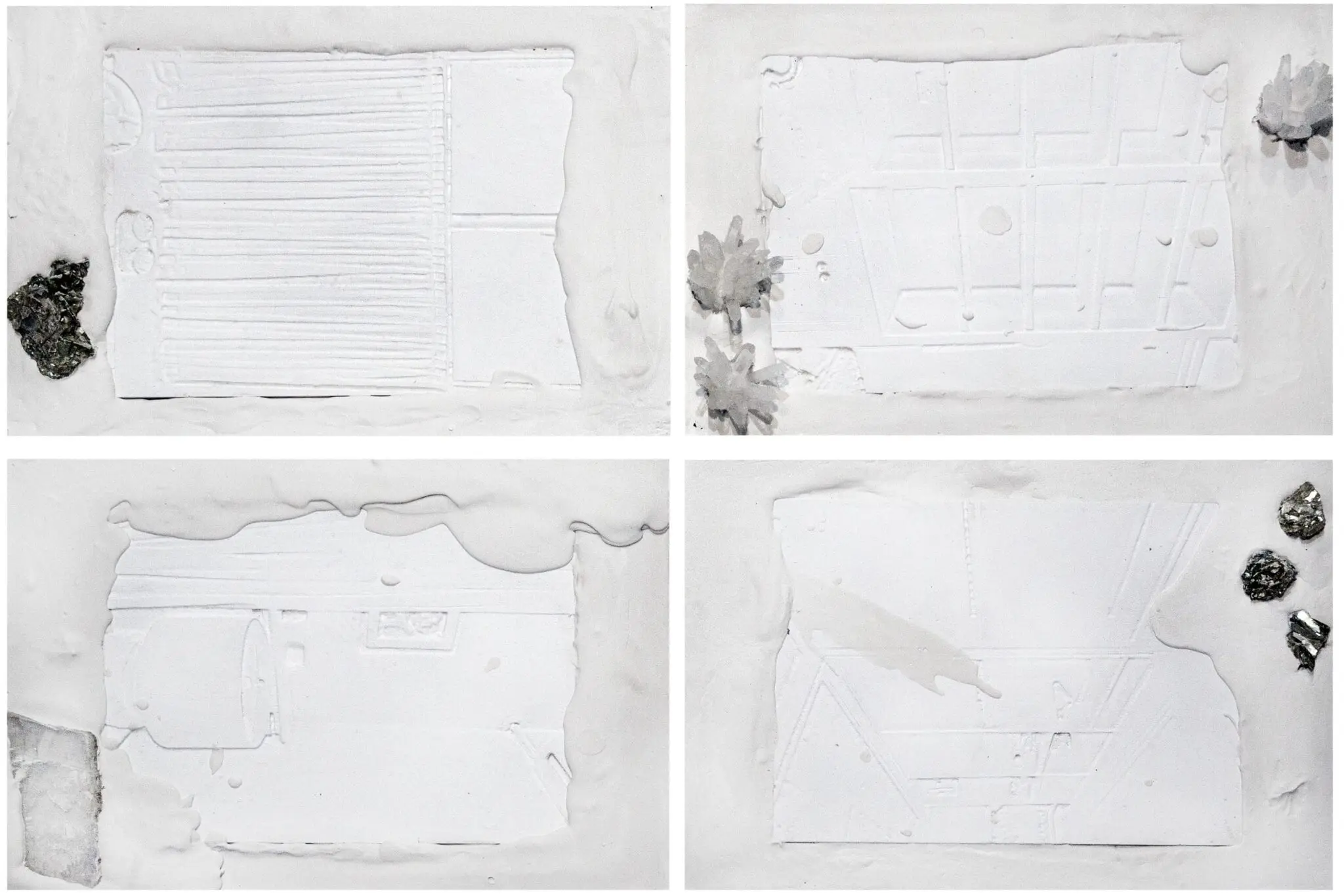 The artist invites us into her personal archive, which chronicles her domestic realm over years. These images are all the results of Mahmudova’s durational approach — an artistic method defined by collecting, layering, and intimate attention to every detail. The absence of inhabitants emphasises the pervasive feeling of confinement, underscoring introspection inherent in these works. The uniform square format of the slide projector serves as a metaphorical window through which both the artist and the viewer peer into moments frozen in time, capturing the essence of solitude and longing. Sourced from personal photographs, she turns autobiographical memories into gypsum objects and sculptures, questioning how to bear witness to moments of liminality and transformation.