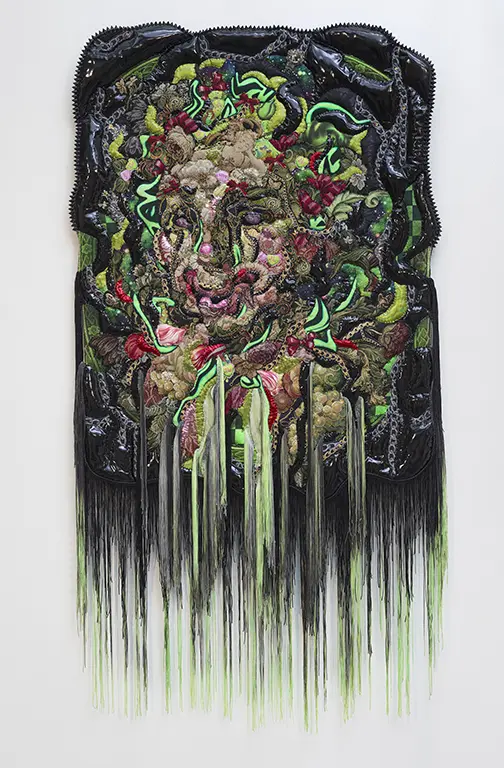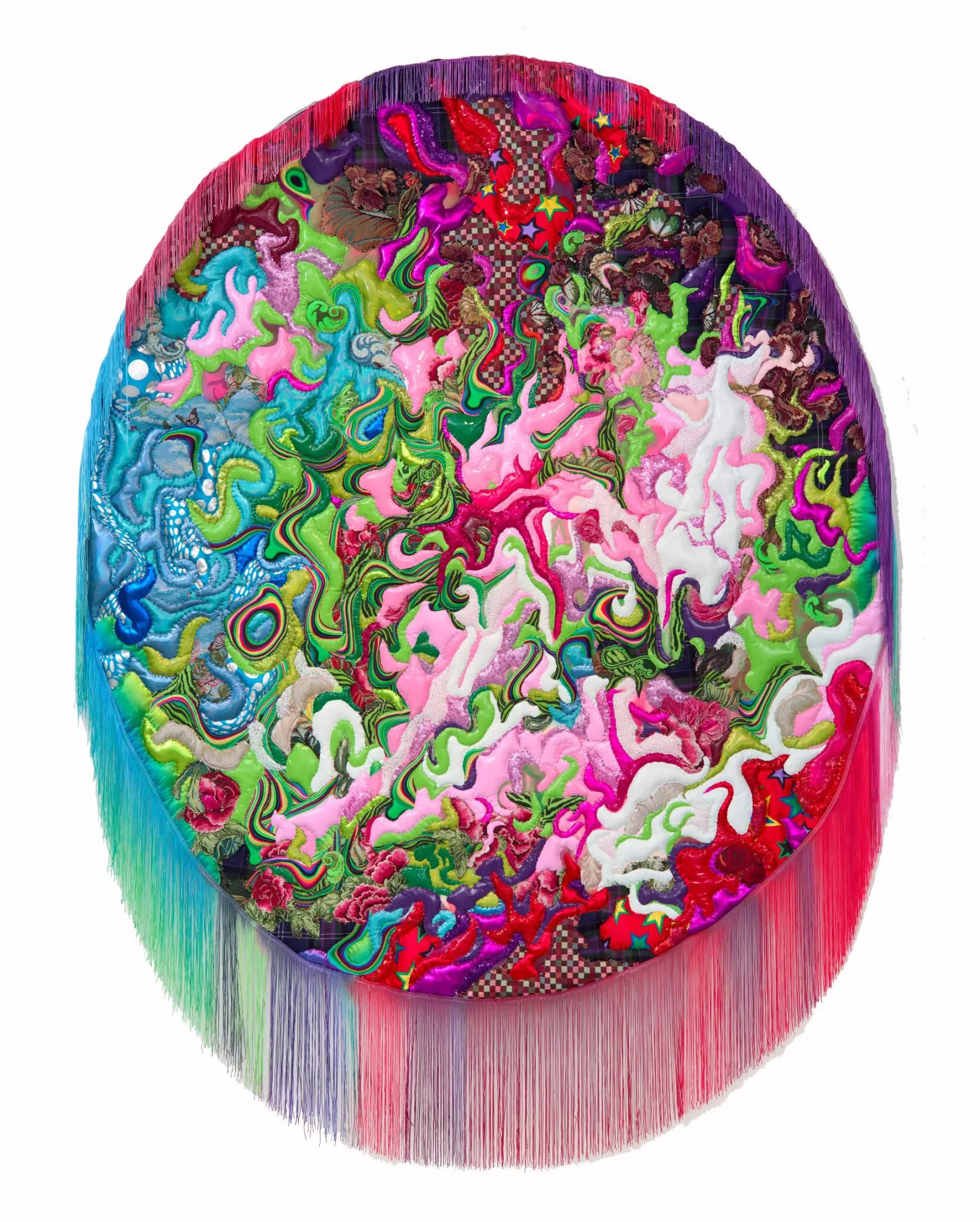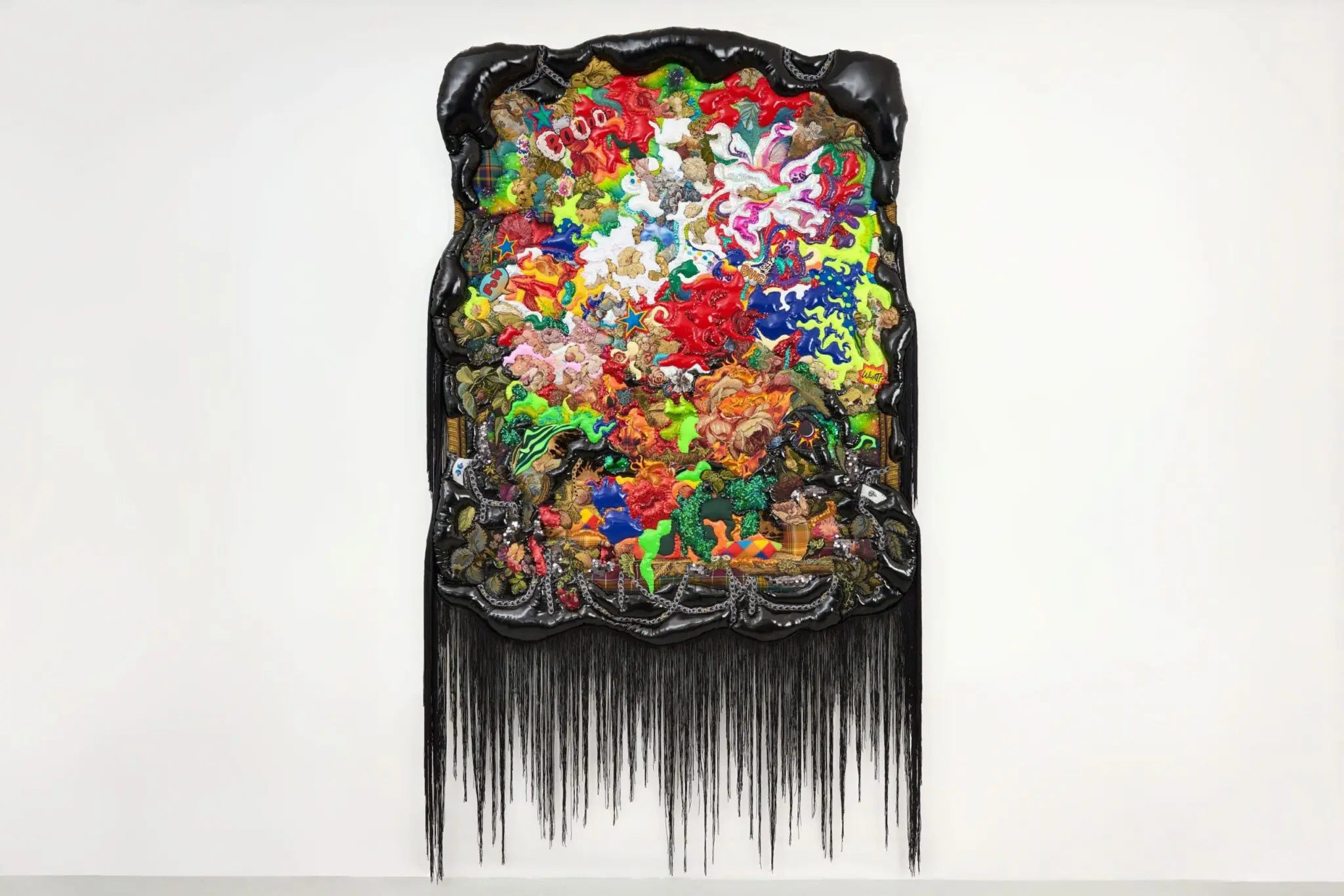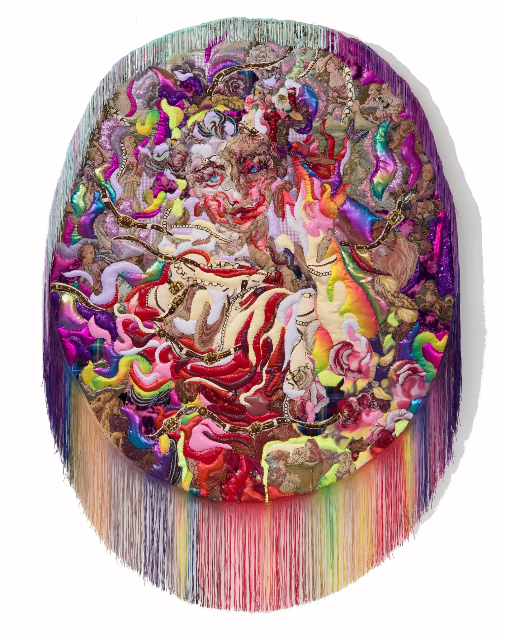 Saatchi Gallery presents Filthy Cute, a solo exhibition by Anne von Freyburg featuring large-scale works that reimagine textile as a medium within the tradition of painting, challenging traditional hierarchies between craft, decoration, and fine art.