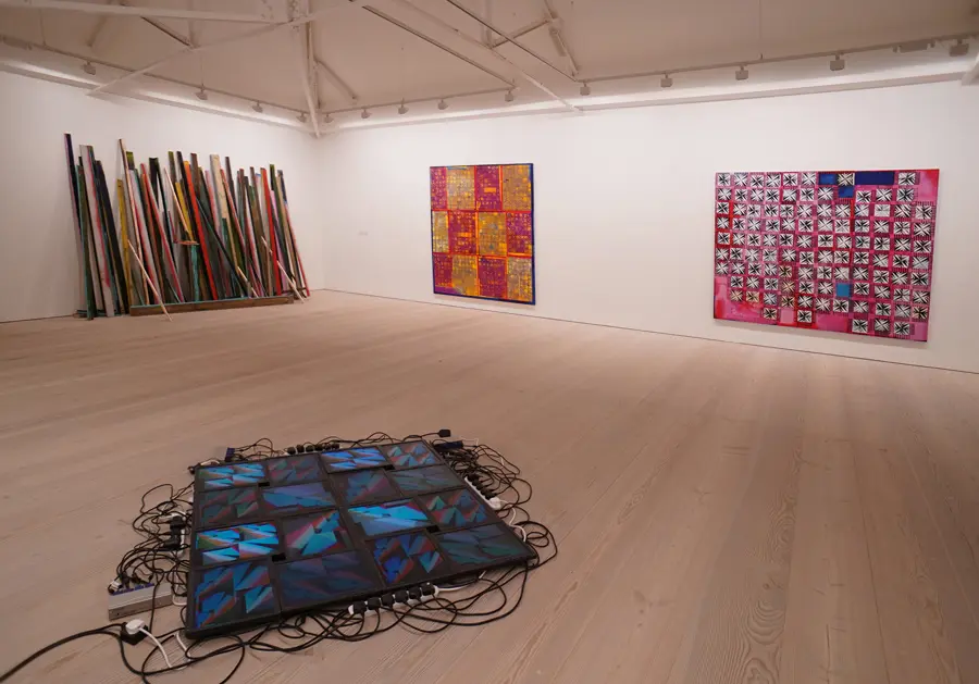 Harder Edge is a survey of recent abstraction curated by Dominic Beattie and Ali Hillman. The selection of 17 artists examines a breadth of visual languages from an international and multi-generational line up. The exhibition moves through an exploration of abstraction, challenging and testing the abilities of a large variety of materials in the artists’ individual interrogations of colour, line and form.