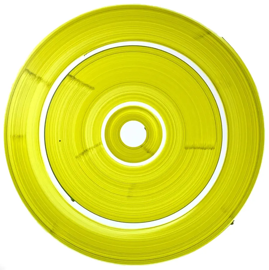 Channelling the constraints and repetitive nature of the past year, there is a reassurance in the hypnotic rotation and its limitations. Each painting is made up of thousands of small concentric rings which vary in colour and thickness. The circles are contained and preordained yet exercise their own power through small variations via human input – such as adding more or less paint to the brushes. These differences in the mark-making highlight the fragility of the outcome and the infinite possibilities in the re-adaptation of machines, but not always for efficiency or function.