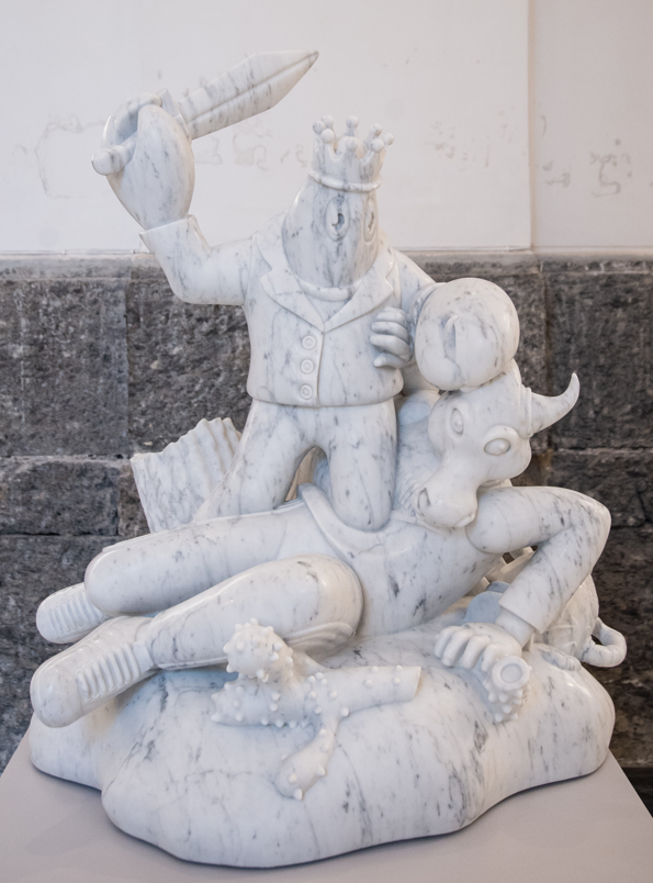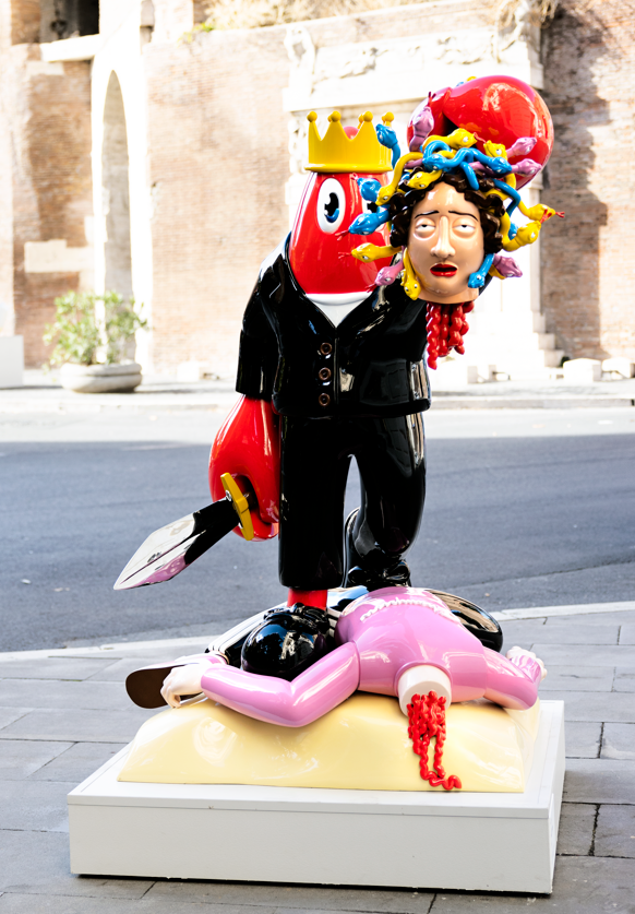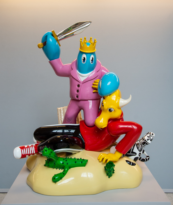 The exhibition also features a series of sculptures that bring the drama of the battle scene to life, drawing on classical mythological figures such as the Centaur, Minotaur, and Medusa. By reinterpreting these legendary figures in his signature style, Colbert underscores the timeless appeal of mythology and its resonance in our own era.