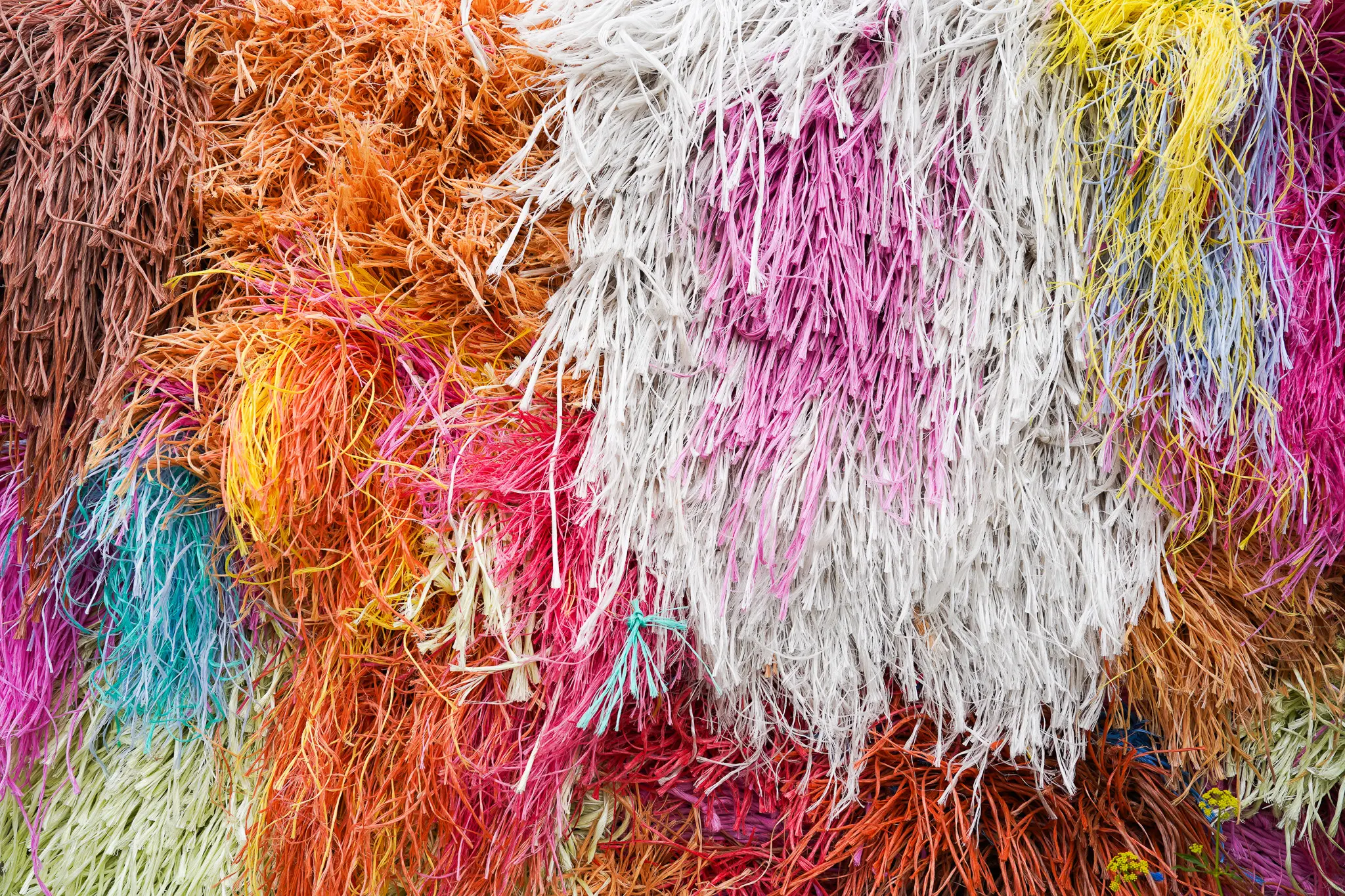 Three Coverings include an immersive wall hanging, a chair sculpture, and a conical freestanding structure draped with a large woven sculptural form. A winding gravel path will guide visitors through the garden, with the main sculpture loosely referencing and evoking traditional celebrations connected to the land. In the same way that people would gather around Stonehenge or the maypole, Fleming’s sculptures have a joyful, vibrant magnetism that draws people to them.