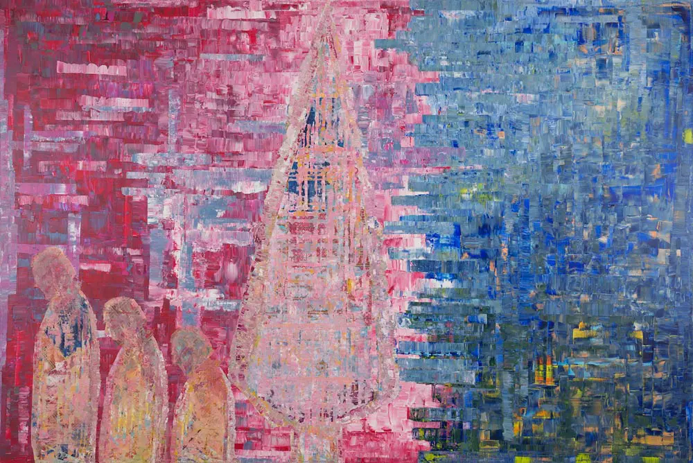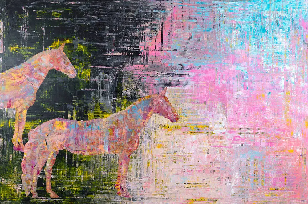 Oneness Wholeness draws on thousands of years of Iranian culture, weaving ancient Persian motifs, patterns and landscapes into large-scale mixed media paintings, to explore Iranian identity in the 21st century. Descended from the ancient nomadic Bakhtiari tribe, Sassan’s large scale paintings recall the Zagros Mountains in South West Iran that are still home to the tribe, amongst other subjects. The Oneness Wholeness series features new, previously unseen work that Sassan has been developing for the last few years.