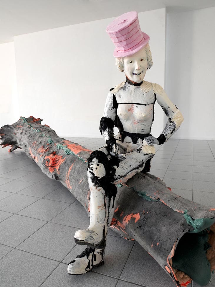 Composed, assembled, sewn, nailed, glued, stacked or layered from materials as varied as clay, polished metal, fabric, plywood, dirt, horse hide, Styrofoam and found objects, the works in the exhibition push the notions of the already expanded field of sculpture. The pieces here are united in the strength of their formal innovations and force of their engagement with contemporary issues. Running from the monumental to the miniature, many of the works play with scale creating a disorienting and charged space between viewer and work. Figurative forms, both human and animal, are used as sites of anxiety and instability challenging art historical archetypes to create a rich new sculptural vocabulary.