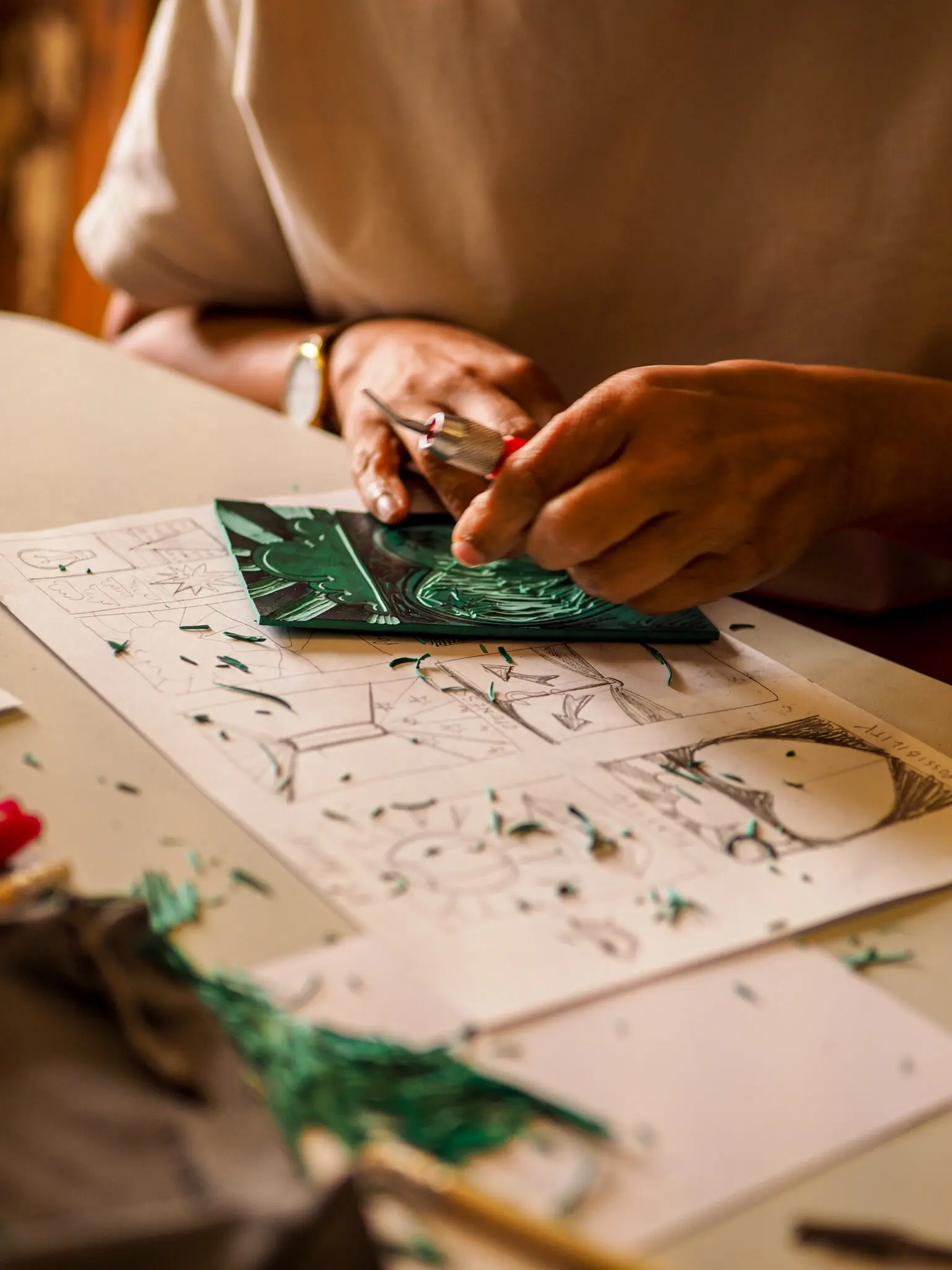 Tarot Card Making: Taking inspiration from Chino Moya’s ‘Post Human’, join Peculiar Arcana, a linocut tarot workshop led by artist Alexi Marshall, where you’ll design, carve, and print your very own tarot card.