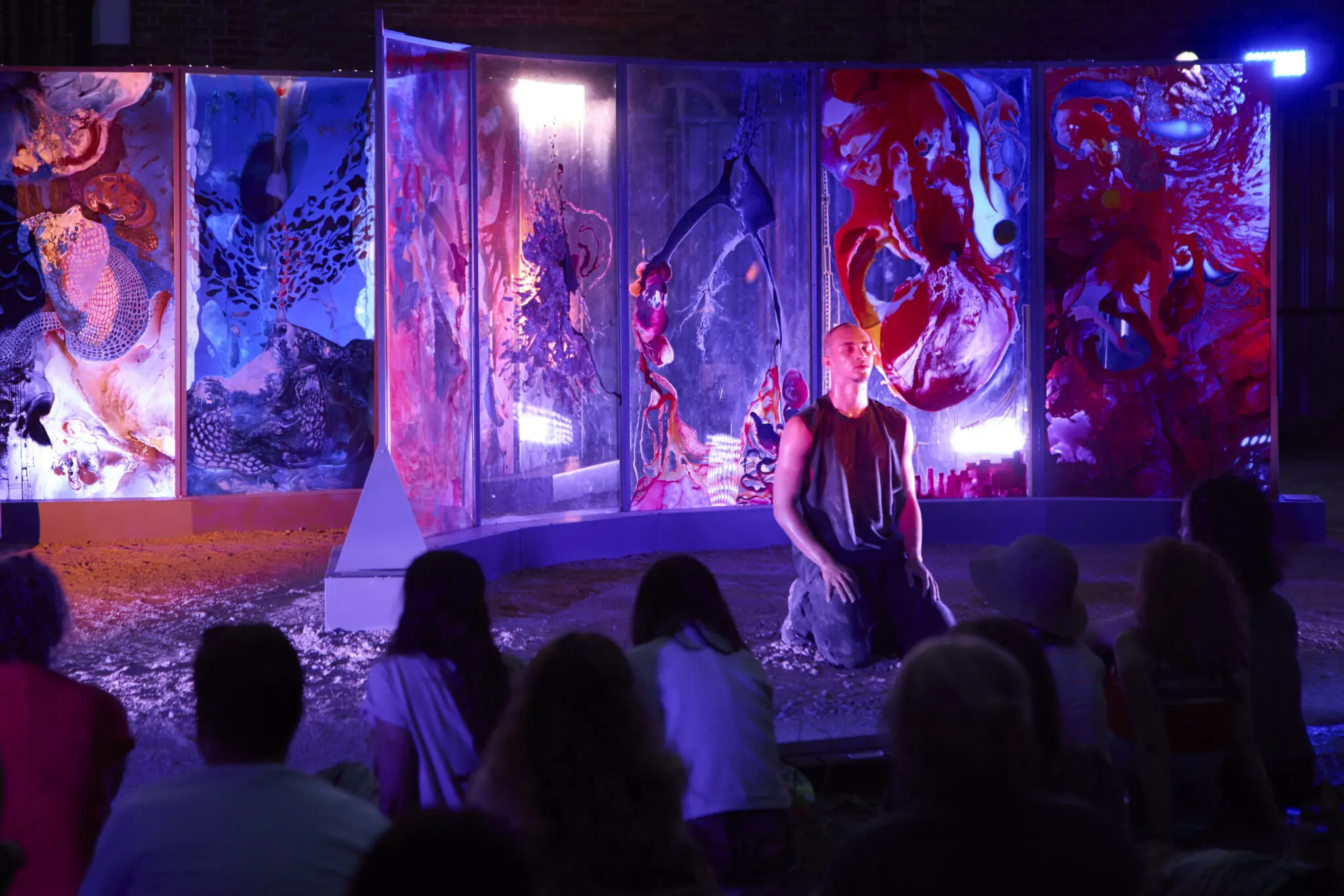 Performance by artist Bryony Ella: Stand of the Sun – a solstice ritual for the melting metropolis – is a unique storytelling experience emerging out of My Body is a Sundial, the artist’s sculptural work on display as part of The Sun and The Moon. Written and directed by Bryony Ella, the event features a live performance by Alleyne Dance, lighting by Rachel Sampley and a musical score composed by Bumi Thomas