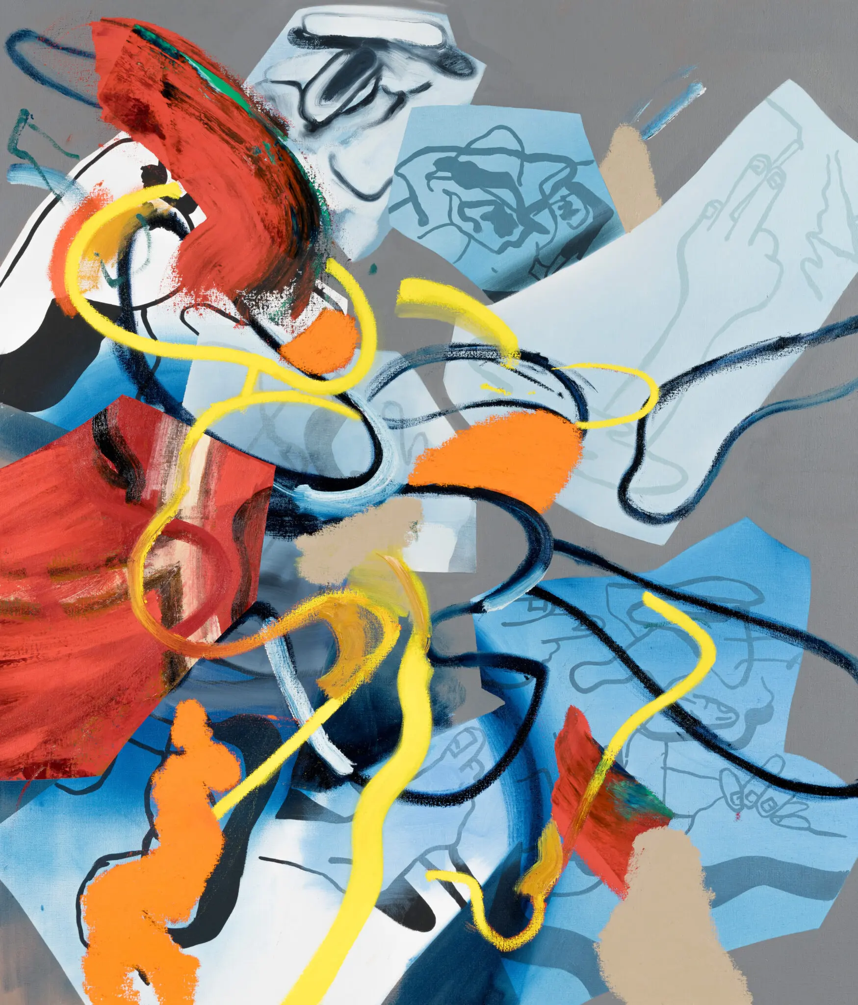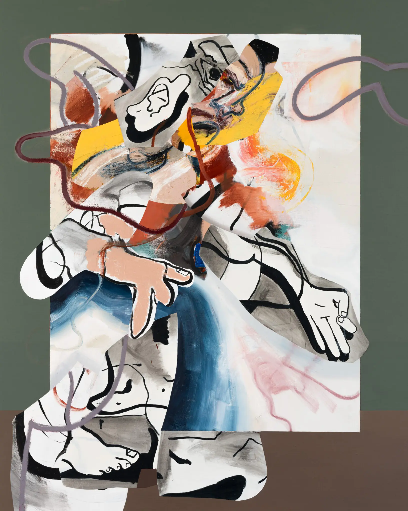 Moncrief approaches figuration from the inside out. His carnal, disembodied ‘figures’ verge on the comic, with echoes of Philip Guston, Francis Bacon, Cecily Brown, and Jenny Saville. Rather than presenting complete bodies, he leaves fragments, residue, and painterly clues: anti-portraits that feel provisional and open-ended. Viewers are invited to assemble meaning from what remains, as if granted access to raw material instead of a finished image.