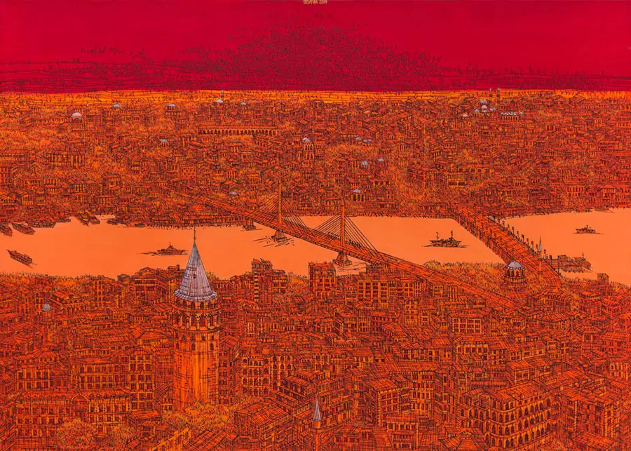 Devrim believes it is vital to introduce Turkish art to international audiences and he created ‘London’ specially to celebrate this exhibition, turning his signature bird’s eye view, so famous in his landmark Istanbul series, on the London skyline. Visitors can view the original painting before it goes under the virtual hammer hosted by online auction platform, Nifty Gateway with curation supported by NFT Consultancy Fanchain.